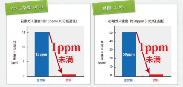 足臭の原因となるイソ吉草酸と汗臭の数値が大きく減少。